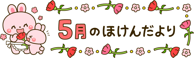 保育園 幼稚園 こども園 園だより えんだより タイトル 5月 5月 ほけんだより 保健だより 保健 母の日 動物 うさぎ ウサギ 兎 花 カーネーション