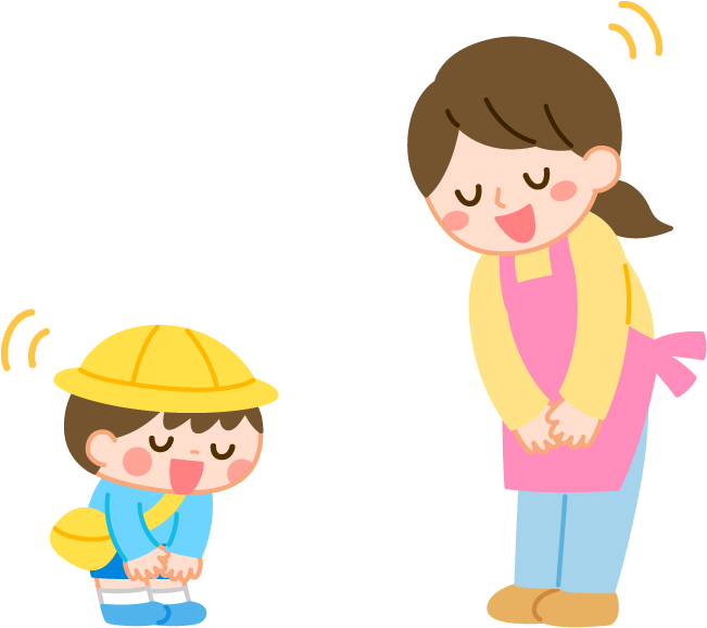 保育園 幼稚園 こども園 園だより えんだより 登園 先生 保育士 園児 男の子 こども 子ども 子供 おはよう あいさつ 挨拶 女性