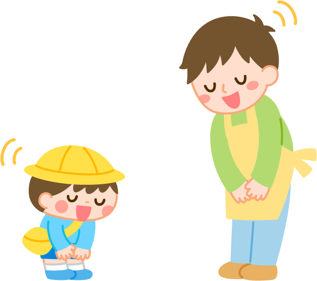 保育園 幼稚園 こども園 園だより えんだより 登園 先生 保育士 園児 男の子 こども 子ども 子供 おはよう あいさつ 挨拶 男性