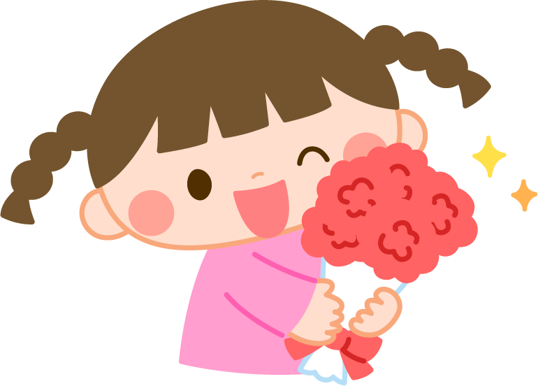 保育園 幼稚園 こども園 園だより えんだより 母の日 こども 子ども 子供 女の子 花 花束 カーネーション キラキラ