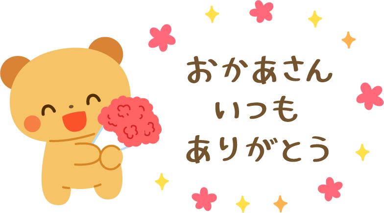 保育園 幼稚園 こども園 園だより えんだより 母の日 いつもありがとう おかあさん お母さん 花 花束 カーネーション キラキラ 動物 くま クマ 熊