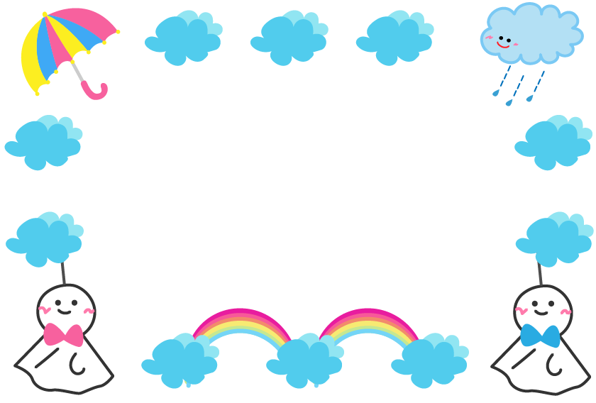てるてるぼうず 傘 雲 梅雨 雨 えんだより お便り 手紙 園だより 虹 にじ