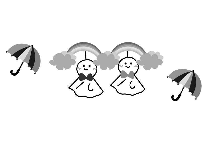 てるてるぼうず 虹 傘 雨 えんだより お便り 手紙 園だより 梅雨 雲 にじ