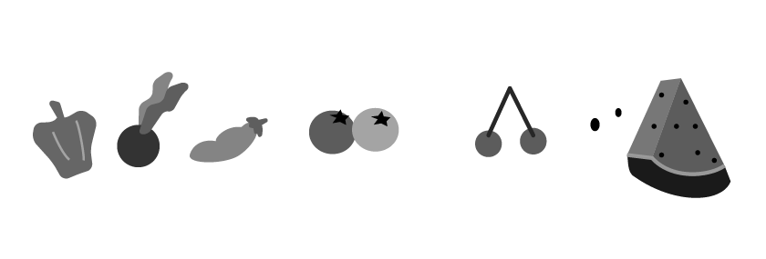 スイカ ラディッシュ やさい プチトマト 食育 えんだより お便り 手紙 園だより さくらんぼ スナップエンドウ パプリカ 野菜マルシェ