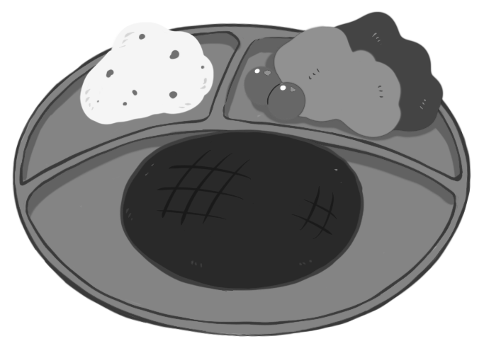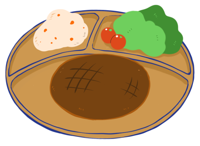 園だより 幼稚園 保育園 こども園 給食 きゅうしょく 食べる 食育 しょくいく はんばーぐ サラダ