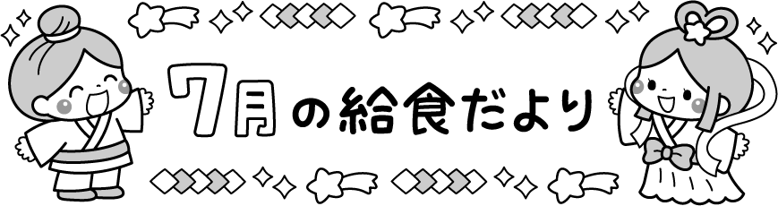 保育園 幼稚園 こども園 園だより えんだより タイトル 7月 7月 七夕 織姫 彦星 星 キラキラ 流れ星 きゅうしょくだより 給食だより 給食 食育 リクエスト