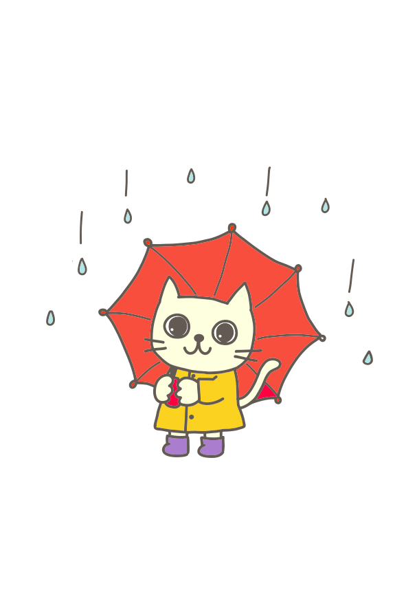 ねこ 猫 あめ 梅雨 傘 雨降り レインコート カッパ