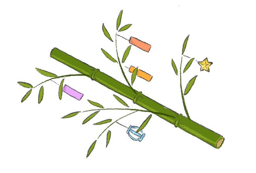 7月 7月 飾り かざり ほし 星 七夕まつり しちせき ささ たなばた 七月 夏 七夕 笹 園だより