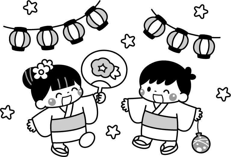 保育園 幼稚園 こども園 園だより えんだより ボンボン ぼんぼん 提灯 うちわ 団扇 朝顔 あさがお イベント 夏祭り 祭り 浴衣 ヨーヨー 星 こども 子ども 子供 園児 男の子 女の子 プールゲーム レトロゲーム