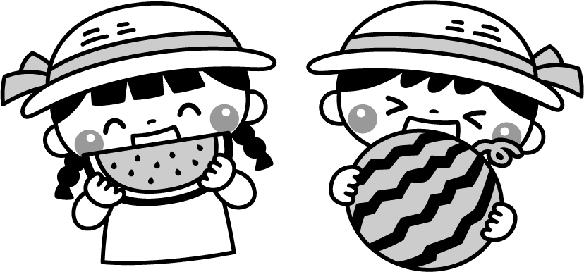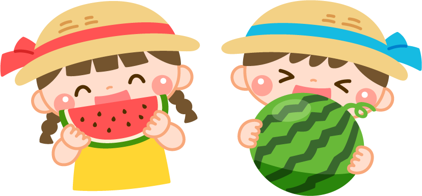 保育園 幼稚園 こども園 園だより えんだより 食育 園児 こども 子ども 子供 男の子 女の子 食べ物 くだもの 果物 フルーツ 旬 旬の食材 旬の果物 すいか スイカ 麦わら帽子 帽子 野菜マルシェ