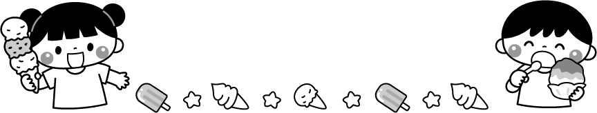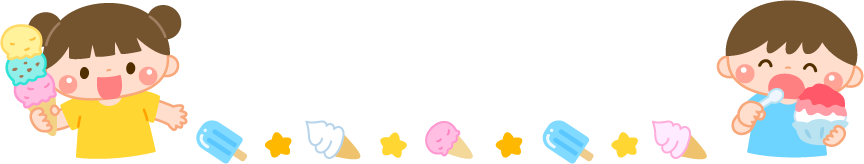 保育園 幼稚園 こども園 園だより えんだより タイトル 食育 給育 園児 こども 子ども 子供 男の子 女の子 食べ物 デザート スイーツ アイスクリーム アイス ソフトクリーム かき氷 カキ氷 夏フレーム 屋台スイーツ