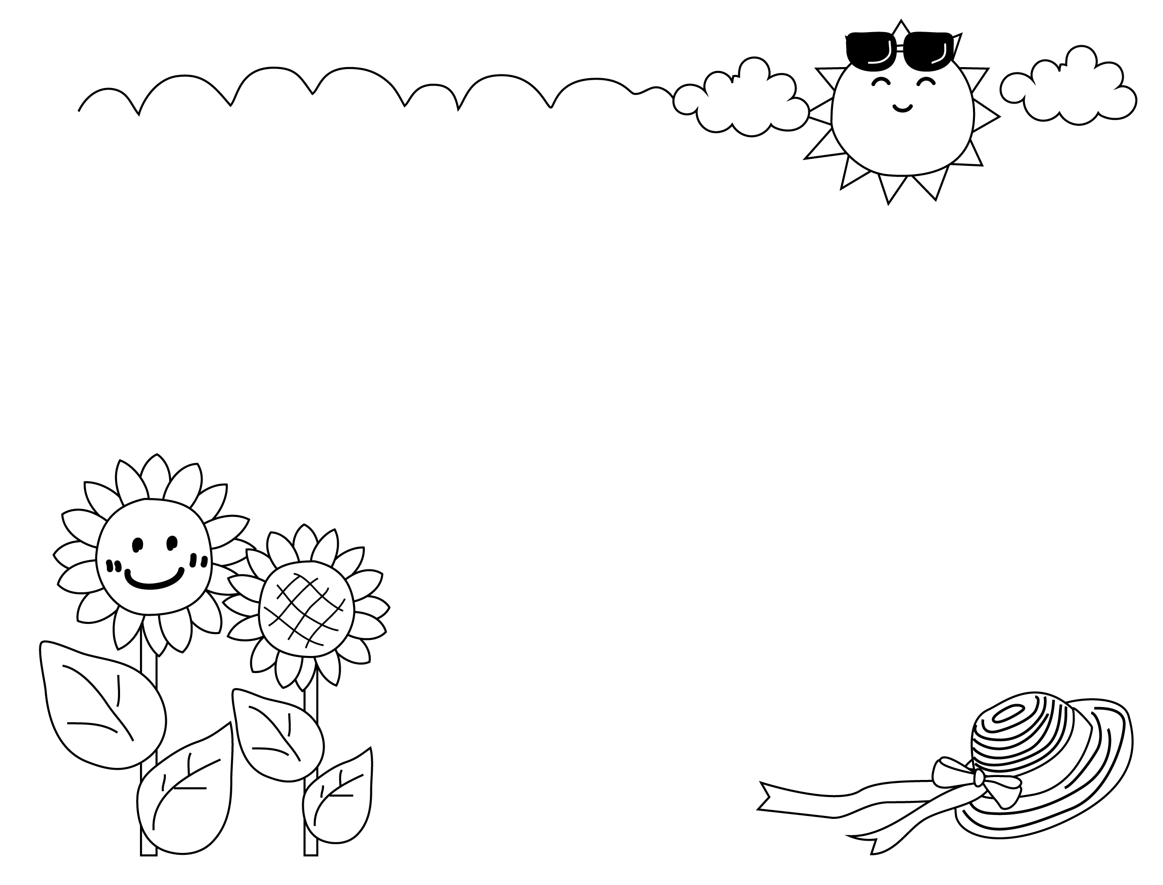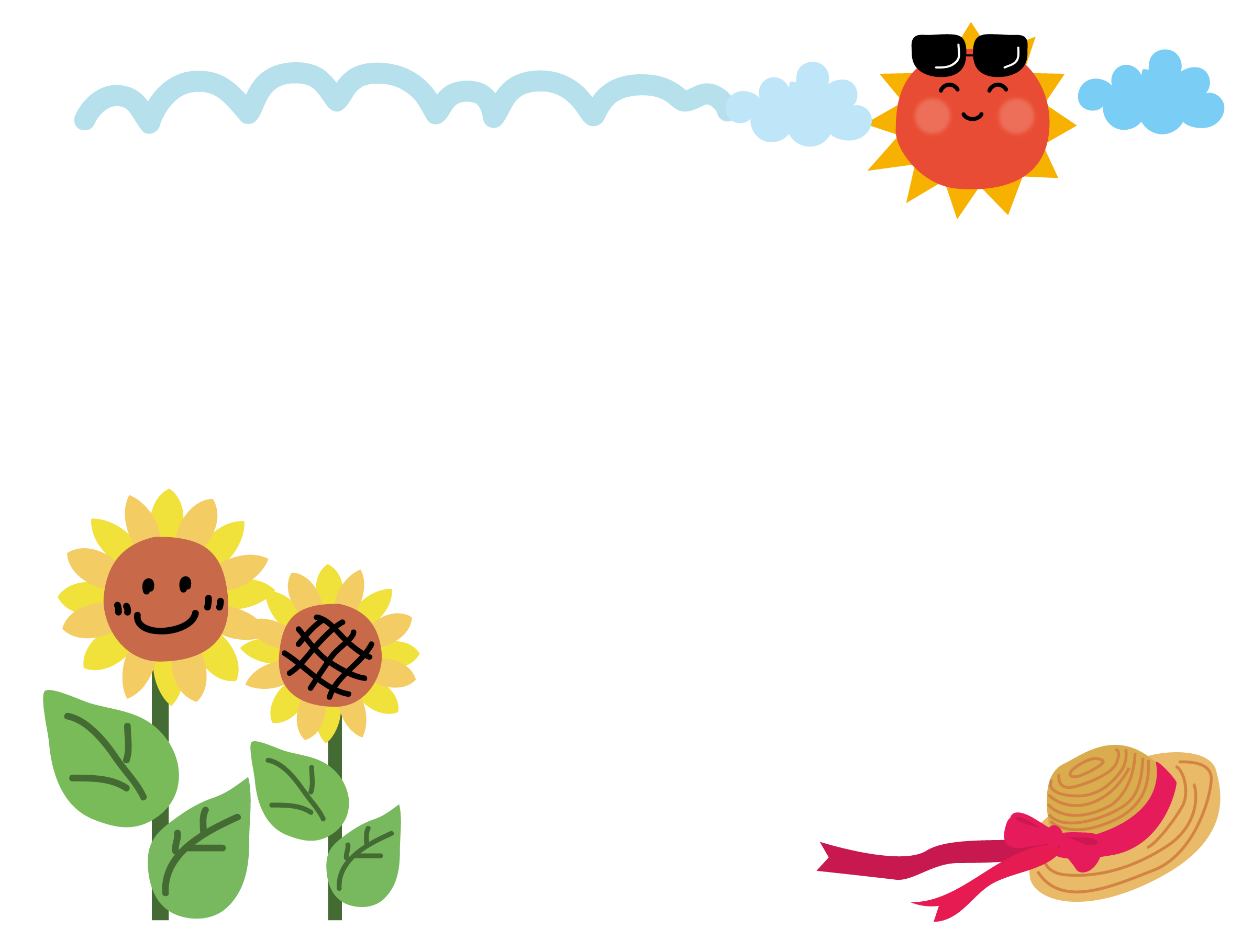 えんだより お便り 手紙 園だより 夏フレーム 夏のイベント ひまわり 向日葵 太陽 サングラス 帽子 ぼうし