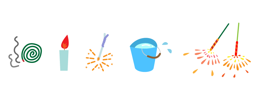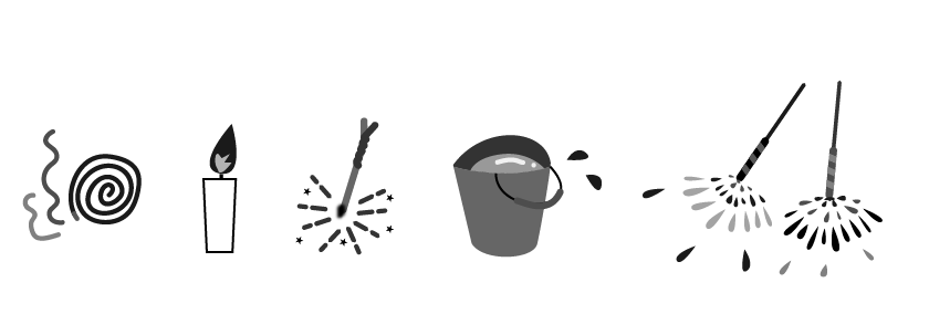 バケツ 蝋燭 ろうそく 手持ち花火 線香花火 えんだより お便り 手紙 園だより 夏のイベント 夏祭り 蚊取り線香 レトロゲーム