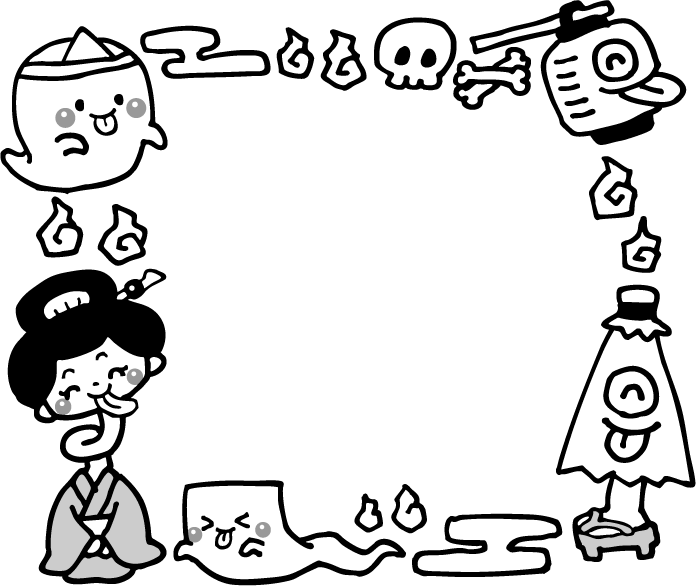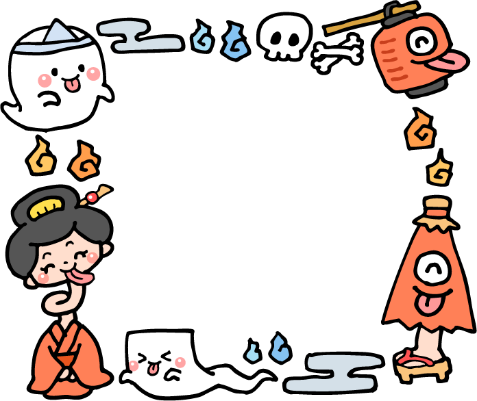 からかさこぞう 唐傘小僧 からかさ小僧 ちょうちんおばけ 保育園 幼稚園 こども園 園だより えんだより 夏フレーム おばけ オバケ お化け お化け屋敷 一反木綿 ろくろくび ろくろ首 提灯 提灯おばけ 骨 ドクロ どくろ 肝試し きもだめし 夏祭り おばけやしき