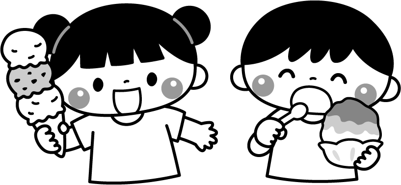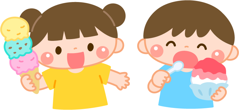 保育園 幼稚園 こども園 園だより えんだより 食育 園児 こども 子ども 子供 男の子 女の子 食べ物 デザート スイーツ アイスクリーム アイス ソフトクリーム かき氷 カキ氷 屋台スイーツ