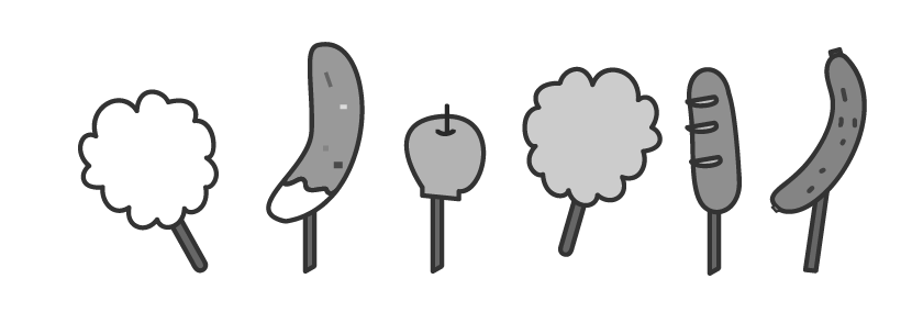 夏祭り 夏のイベント きょうり フランクフルト わたがし 綿菓子 チョコバナナ りんご飴 出店 屋台 屋台スイーツ 屋台フード