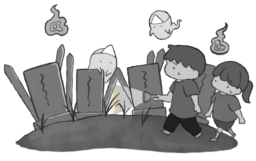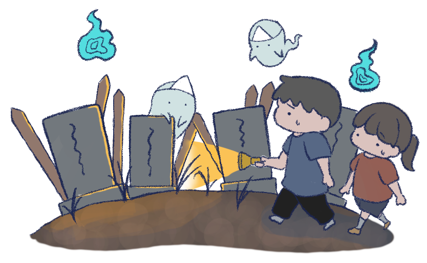 保育園 幼稚園 こども園 園だより えんだより 園児 こども 子ども 子供 男の子 女の子 肝試し おばけ オバケ 幽霊 火の玉 お化け屋敷 きもだめし