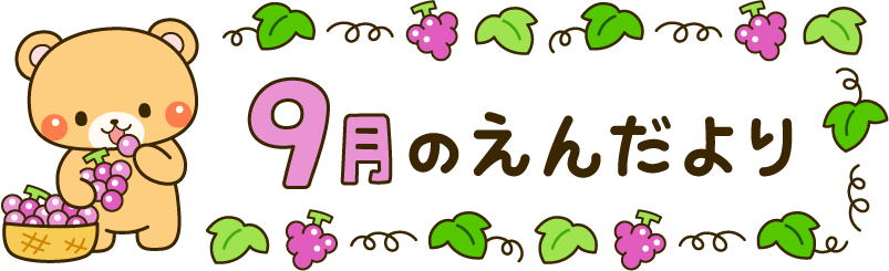 保育園 幼稚園 こども園 園だより えんだより タイトル 9月 9月 9月のえんだより 9月のえんだより ぶどう狩り ブドウ狩り ぶどう ブドウ 葡萄 果物 フルーツ 食べ物 動物 くま クマ 熊
