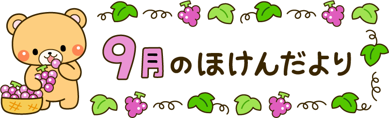 保育園 幼稚園 こども園 園だより えんだより タイトル ほけんだより 保健だより 保健 9月 9月 9月のほけんだより 9月の保健だより ぶどう狩り ブドウ狩り ぶどう ブドウ 葡萄 果物 フルーツ 食べ物 動物 くま クマ 熊