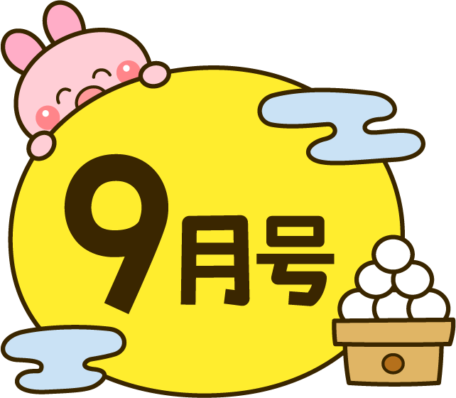 保育園 幼稚園 こども園 園だより えんだより タイトル 9月 9月 9月号 9月号 お月見 お月見団子 月見団子 団子 だんご 満月 月 雲 くも うさぎ ウサギ 兎 動物