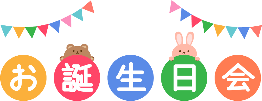 掲示板 園だより 誕生会 おたんじょうび クマ くま ウサギ うさぎ ガーランド お誕生日 ハッピーバースディ ハッピーバースデー バースデー バースディ お誕生日会
