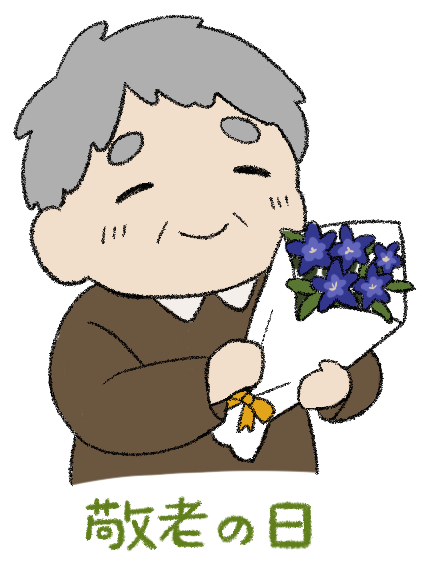 園だより お知らせ 行事 国民の祝日 祝日 老人の日 老人 敬老 けいろう お年寄り おじいさん おじいちゃん 花束 プレゼント リクエスト