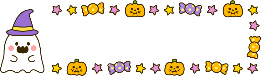 秋フレーム 保育園 幼稚園 こども園 園だより えんだより タイトル 10月 10月 ハロウィン おばけ オバケ かぼちゃ カボチャ 南瓜 パンプキン 星 あめ アメ 飴 キャンディー お菓子