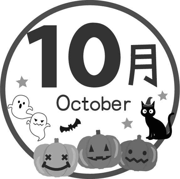 園だより 幼稚園 保育園 こども園 タイトル 10月 予定 スケジュール ハロウィン はろうぃん かぼちゃ カボチャ おばけ オバケ コウモリ こうもり 黒猫 ねこ ネコ 星