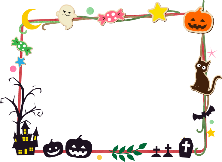 秋フレーム クッキー お菓子 ホシ ほし アメ キャンディ あめ 帽子 ぼうし オバケ おばけ カボチャ かぼちゃ ねこ ネコ は黒猫 オータム はろうぃん ハロウィン 10月 10月 園だより 手紙 掲示板 城 三日月 木 こうもり コウモリ 十字架 墓 月