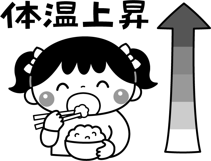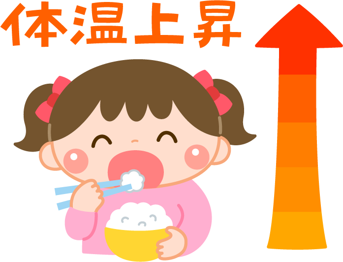 リクエスト 保育園 幼稚園 こども園 園だより えんだより 園児 こども 子ども 子供 女の子 ほけんだより 保健だより 保健 代謝 身体 体 体温 体温上昇 体温が上がる 朝ごはん 朝食 食事性熱誘発 エネルギー 朝御飯の効果 朝ご飯の効果 朝ごはんの効果