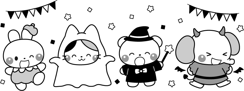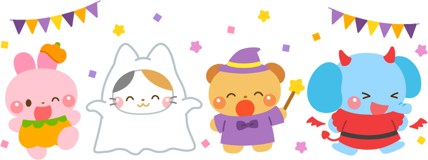 ねこ ネコ 猫 くま クマ 熊 ぞう ゾウ 象 動物 うさぎ ウサギ 兎 おばけ オバケ お化け 保育園 幼稚園 こども園 園だより えんだより ハロウィン コスプレ 小悪魔 かぼちゃ カボチャ 南瓜 パンプキン 秋のイベント 星 ガーランド