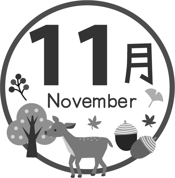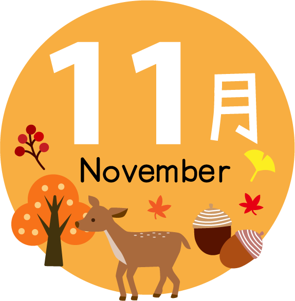 園だより 幼稚園 保育園 こども園 タイトル 11月 予定 スケジュール 鹿 シカ しか どんぐり ドングリ 紅葉 もみじ 銀杏 いちょう 木