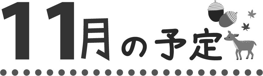 園だより 幼稚園 保育園 こども園 タイトル 11月 スケジュール どんぐり 紅葉 しか 鹿 シカ 行事