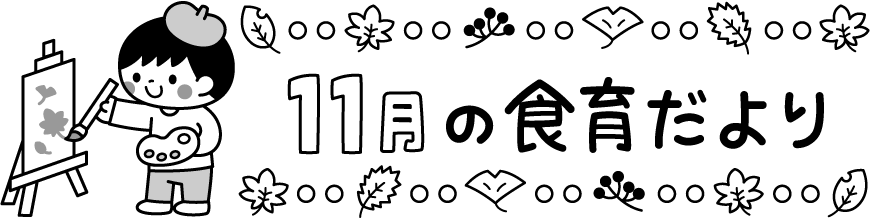 しょくいくだより 食育だより 給食 食育 保育園 幼稚園 こども園 園だより えんだより 11月 11月 タイトル 枯れ葉 イチョウ 紅葉 落ち葉 キャンバス イーゼル 絵画 芸術の秋