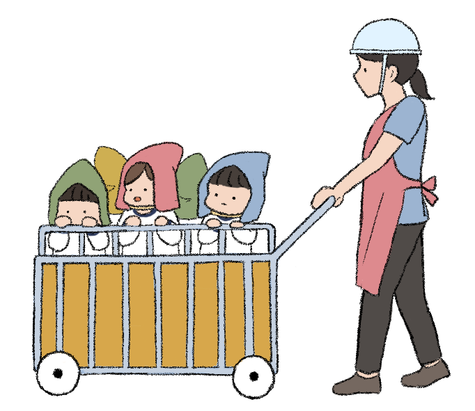 避難 火事 地震 災害 カート お出かけ 子ども 子供 園児 せんせい 先生 さんぽ お散歩 メッセージ 園だより 幼稚園 こども園 保育園