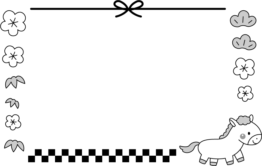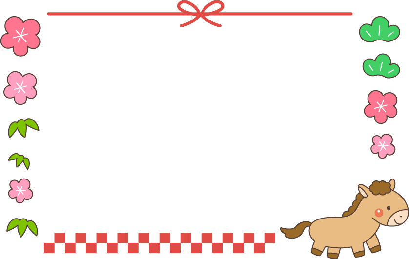 笹 冬フレーム 保育園 幼稚園 こども園 園だより お正月 正月 2026 2026 干支 うま ウマ 馬 午 動物 年賀 年賀状 花 梅 松