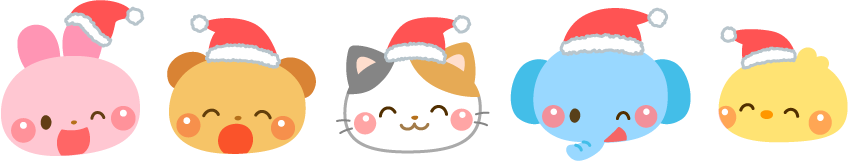 帽子 サンタクロース ねこ ネコ 猫 ひよこ ヒヨコ とり トリ 鳥 ぞう ゾウ 象 くま クマ 熊 うさぎ ウサギ 兎 保育園 幼稚園 こども園 園だより えんだより クリスマス Christmas Xmas 冬フレーム 動物