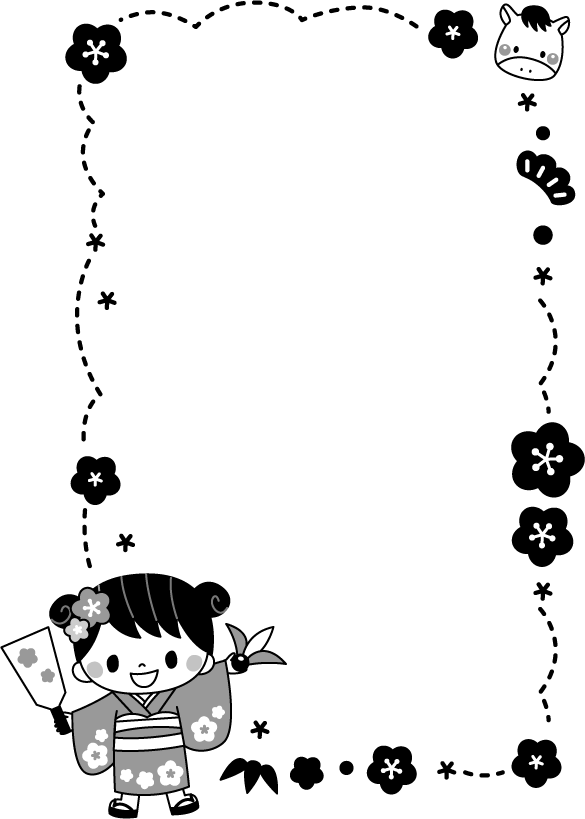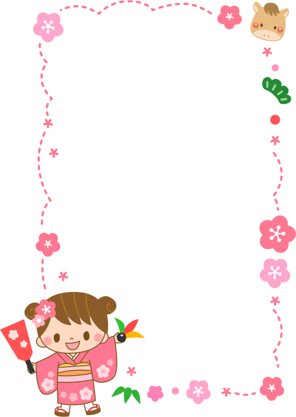 羽子板 うめ 梅 花 松 笹 着物 園児 こども 子ども 子供 女の子 保育園 幼稚園 こども園 園だより お正月 正月 2026 2026 干支 うま ウマ 馬 午 動物 年賀 年賀状