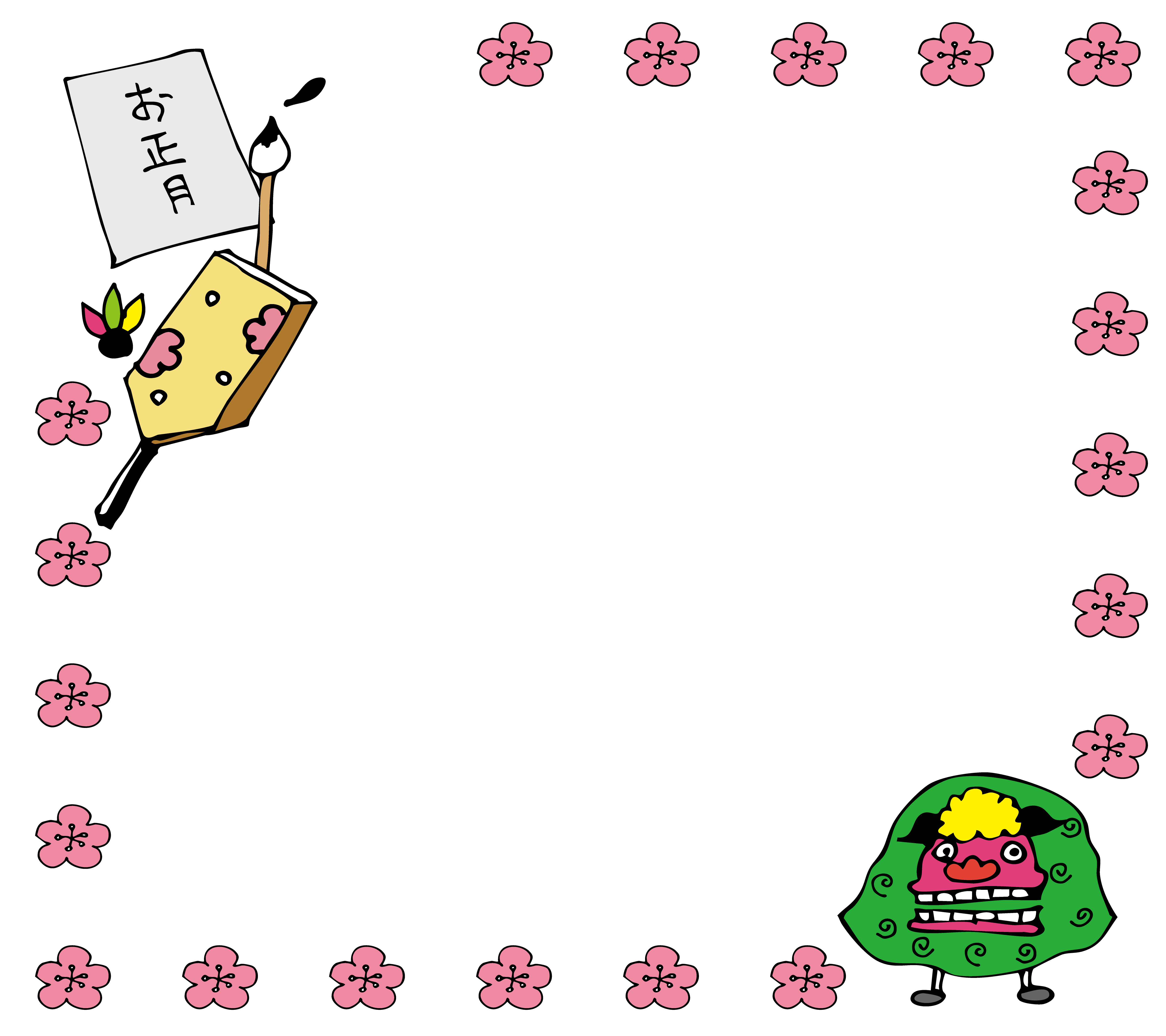 保育園 幼稚園 こども園 園だより えんだより 獅子舞 羽子板 筆 書き初め