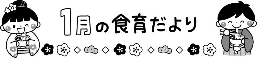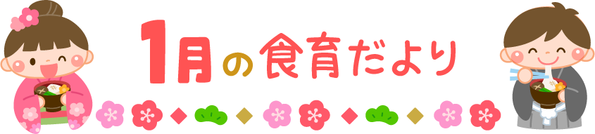 松 梅の花 梅 花 袴 着物 食べ物 御雑煮 お雑煮 お正月 正月 園児 こども 子ども 子供 男の子 女の子 保育園 幼稚園 こども園 園だより えんだより タイトル 1月 1月 しょくいくだより 食育だより 食育 給食