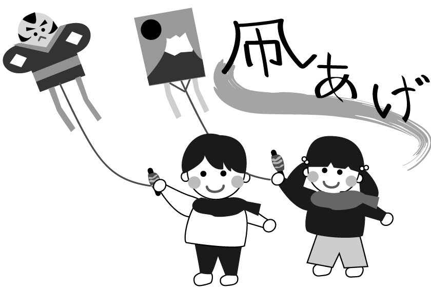お正月 正月 正月遊び たこあげ 園だより えんだより お便り 手紙 男の子 女の子 子ども こども 外遊び リクエスト