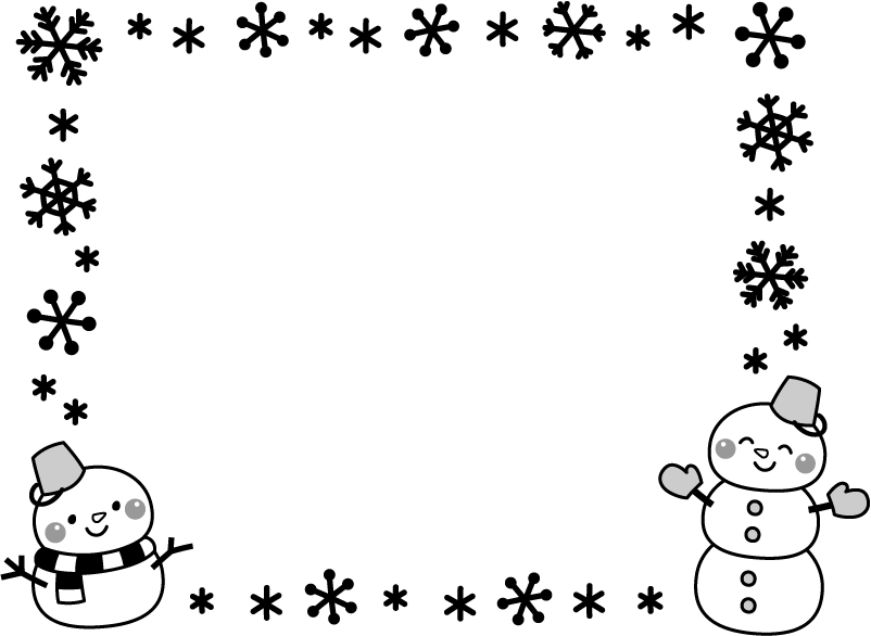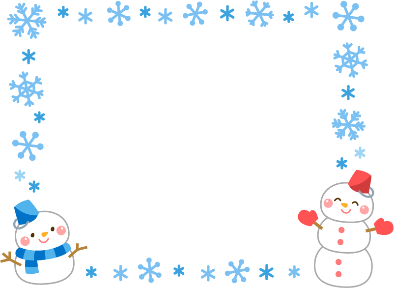 保育園 幼稚園 こども園 園だより えんだより 冬フレーム ゆきだるま 雪だるま 雪ダルマ バケツ マフラー ゆき 雪 雪の結晶 手袋
