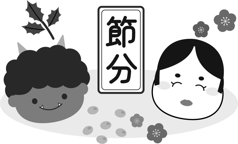 幼稚園 保育園 こども園 園だより 鬼 オニ せつぶん 鬼は外 マメ 豆まき 2月 2月 福は内 掲示板 冬のイベント