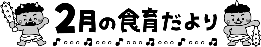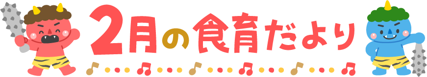 金棒 青鬼 赤鬼 鬼 オニ おに 節分 リクエスト 保育園 幼稚園 こども園 園だより えんだより タイトル 2月 2月 しょくいくだより 食育だより 食育 給食 音符