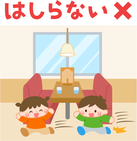 保育園 幼稚園 こども園 園だより えんだより 園児 こども 子ども 子供 男の子 女の子 リクエスト お店の中でやってはいけないこと お店 店 飲食店 マナー 食事のマナー はしらない 走らない 注意 禁止 レストラン ファミレス