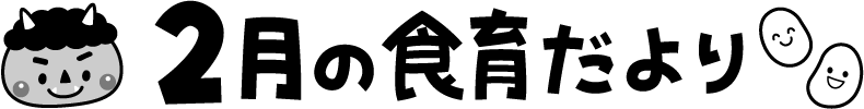 豆 まめ 赤鬼 鬼 オニ おに 節分 リクエスト 保育園 幼稚園 こども園 園だより えんだより タイトル 2月 2月 しょくいくだより 食育だより 食育 給食