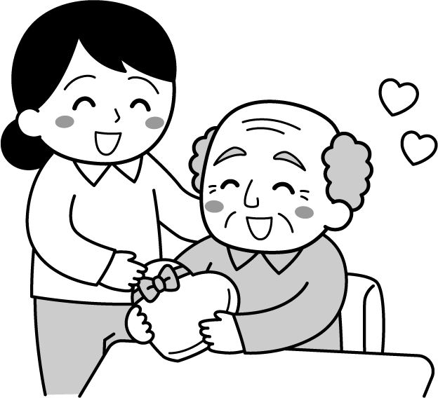 保育園 幼稚園 こども園 園だより えんだより おじいちゃん おじいさん 介護士 介護 介護職 介護施設 老人ホーム デイサービス イベント バレンタイン 冬のイベント バレンタインチョコ チョコ チョコレート ハート チョコレートをもらう レクリエーション