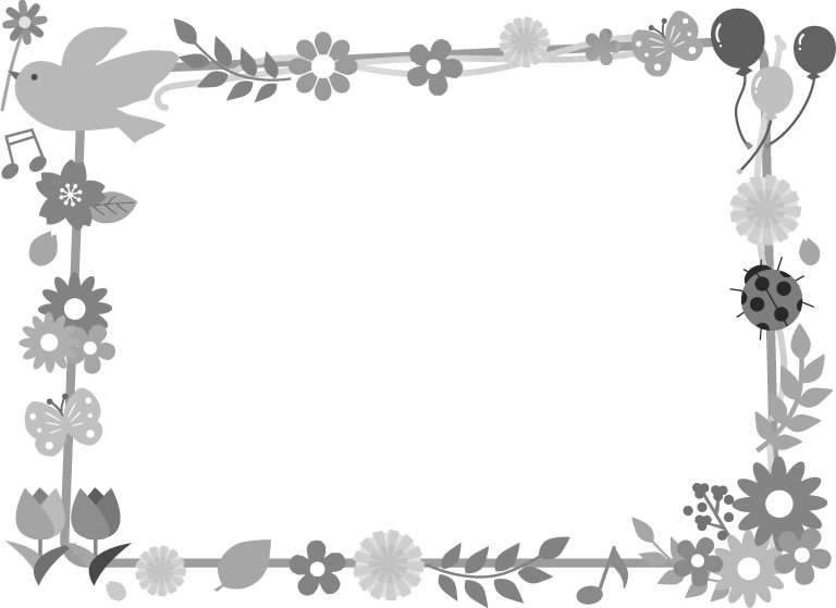 花フレーム 園だより タイトル 花 はな 鳥 とり 風船 ふうせん 葉っぱ 桜 サクラ 音符
