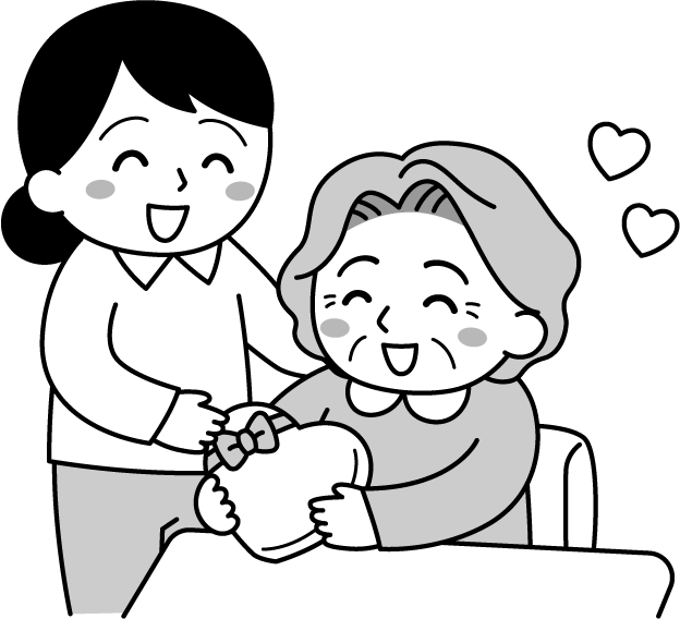 保育園 幼稚園 こども園 園だより えんだより おばあちゃん おばあさん 介護士 介護 介護職 介護施設 老人ホーム デイサービス イベント バレンタイン 冬のイベント バレンタインチョコ チョコ チョコレート ハート チョコレートをもらう レクリエーション