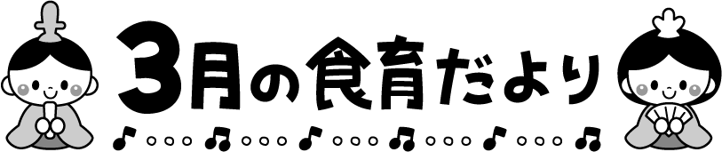 保育園 幼稚園 こども園 園だより えんだより タイトル 3月 3月 しょくいくだより 食育だより 食育 給食 ひな祭り お雛様 お内裏様 音符 ひなまつり